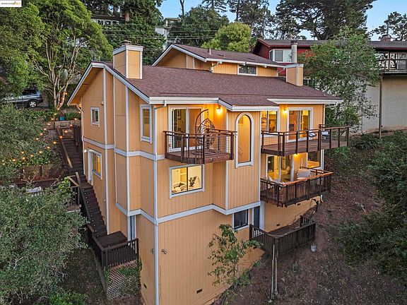 Treetop living with stunning canyon views in sought-after Piedmont Pines! This 4BR/3BA, 2.5-story home offers vaulted wood-beam ceilings, a sunlit gourmet kitchen, and multiple decks overlooking Shepherd Canyon. Enjoy seamless indoor-outdoor flow, two fireplaces, and a terraced yard perfect for entertaining or relaxing. The lower level has its own entrance and bathroom—ideal for guests, office, or ADU potential. Thoughtful upgrades include a new roof (2025), upgraded electrical panel with EV outlet, kitchen remodel (2020), newer windows and sliding doors, water heater (2020), sewer lateral, a new foundation beneath the weight room that was tied back into the original foundation and more. Custom library with ladder, updated wood floors, ample storage, and great natural light throughout. Located on a quiet street near Redwood Regional Park, just a short car-free excursion to Montclair Village via trail and minutes to BART, shops, and restaurants. Peaceful, private, and move-in ready—this hillside retreat offers the best of Oakland living.