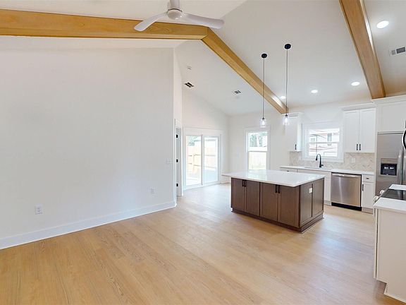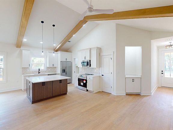 Seller is offering buyer concessions! Welcome to this stunning new construction home, featuring 3 bedrooms and 2 bathrooms in a prime location close to all the best that the area has to offer. As you enter, you'll be greeted by a cozy foyer with a built-in cabinet display, perfect for a bar or showcasing your favorite decor. The home boasts an open floor plan, ideal for entertaining, with a spacious living area highlighted by a tall vaulted ceiling with beautiful wood beams and luxury vinyl plank flooring throughout. The heart of the home is the kitchen, featuring an oversized island with a luxurious quartz countertop and ample cabinet storage. The living area seamlessly flows into the dining space, creating an inviting atmosphere for gatherings. Retreat to the master bedroom, which offers a tray ceiling and an en-suite bathroom designed for relaxation. The master bath includes a soaking tub, a separate shower, dual vanity sinks, and a walk-in closet. The guest bedrooms are thoughtfully located off the living area, providing privacy with a small hallway that leads to the shared guest bathroom. Step outside to the generously sized backyard, perfect for outdoor activities and relaxation. With no HOA restrictions, you have the freedom to personalize your space. This home is conveniently located near the Galvez Boat Launch, local restaurants, the beautiful beaches of Perdido Key, downtown Pensacola, and just 10 minutes from the back gate of NAS Pensacola. Don’t miss the opportunity to own this exceptional new construction home in a fantastic location!