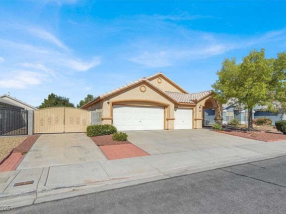 BEAUTIFULLY APPOINTED SINGLE-STORY 3 BEDROOM HOME WITH RV PARKING, 3-CAR GARAGE, AND NO HOA! CENTRALLY LOCATED WITH EASY ACCESS TO SCHOOLS, SHOPPING, FREEWAYS, AND JUST MINUTES FROM THE WORLD-CLASS ENTERTAINMENT OF THE LAS VEGAS STRIP. OPEN FLOORPLAN FEATURES A FORMAL LIVING AND DINING ROOM AT ENTRY, CUSTOM FLOORING, AND DESIGNER PAINT THROUGHOUT. OVERSIZED FAMILY ROOM WITH FIREPLACE OPENS TO A CHEF’S KITCHEN COMPLETE WITH ALL APPLIANCES INCLUDED AND AMPLE SPACE TO ENTERTAIN FAMILY AND FRIENDS. LARGE PRIMARY SUITE WITH SPA-LIKE BATH, PLUS TWO ADDITIONAL BEDROOMS. PRIVATE REAR YARD WITH COVERED PATIO—PERFECT FOR RELAXING AFTER A LONG VEGAS AFTERNOON. SECURE GATED RV PARKING ADDS EXTRA VALUE. THIS RARE SINGLE-STORY GEM WITH RV PARKING AND NO HOA IS OFFERED UNDER $500K. CALL TODAY FOR YOUR PRIVATE SHOWING!