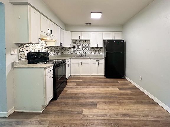 Updated bathTwo spacious bedroomsVinyl plank flooringDining areaUpdated cabinetryKitchen with fridge