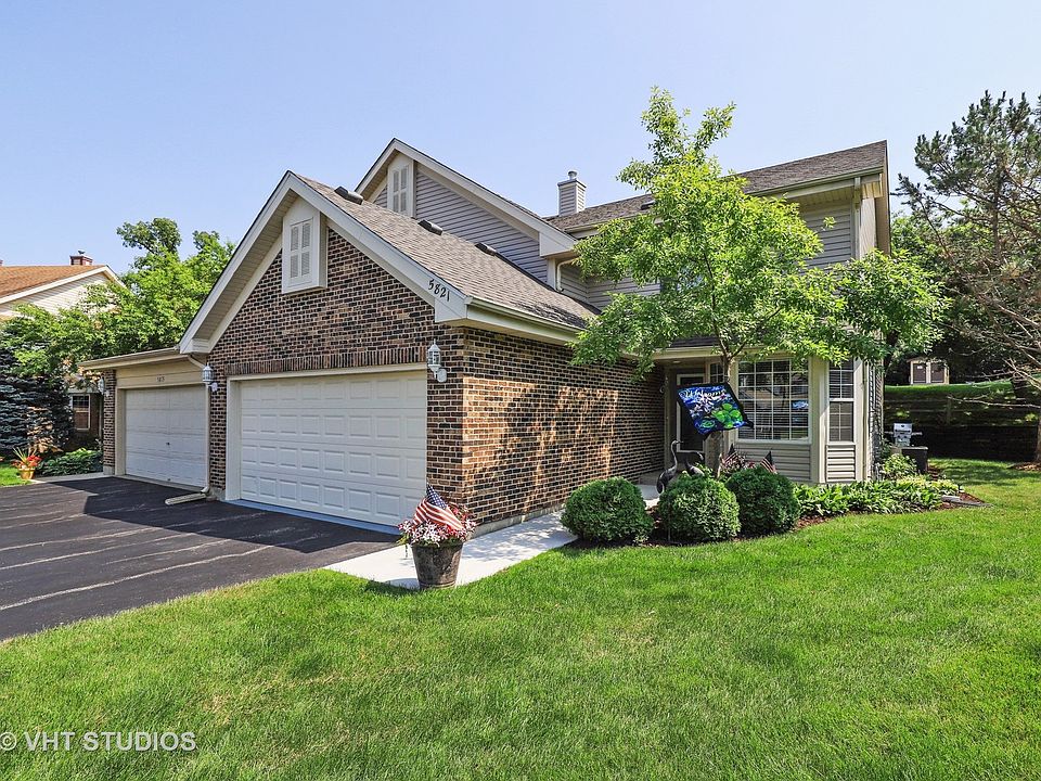 Completely redone half duplex in golf course community just steps to clubhouse and pool. Move in ready with new kitchen cabinets, quartz counter tops, stainless steel appliances, and heated floor and bay window breafast room. Pergo Outlast waterproof flooring in living, dining, family room, laundry and back hall. Living and Dining rooms have 2 story ceiling, and wood burning fireplace. All bathrooms have been redone, master bath with 92" double bowl vanity with marble tops, heated floor, spa size steam shower, with built in bench, glass block window, rain shower and hand held sprayer. Master has 2 walk in closets. New high end carpet on second floor. Professionally painted interior, new roof and siding. New sidewalk. Large recreation area in basement. Plenty of storage. 2 car garage. Large private back deck. Nothing to do but move in and enjoy.