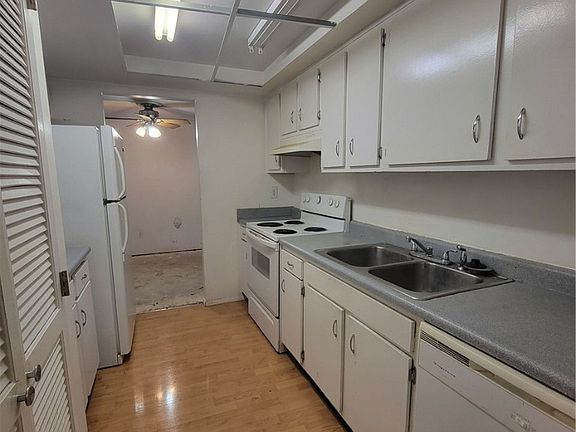 Investor Special! Priced well below market value, this 2-bedroom, 2-full-bath condo offers 937 sq. ft. of opportunity and is ready for your finishing touches. Enjoy the ease of single-floor living with a layout that includes a dining room, living room, and a galley kitchen complete with appliances. Large windows provide abundant natural light throughout. A sliding patio door leads to your private patio with additional storage, and the unit is conveniently located near its personal carport. With just a bit of paint and new flooring, this condo can quickly become the perfect investment or personal home. Located only minutes from shopping, dining, and more, you’ll love the convenience. The HOA covers lawn care, snow removal, trash, and exterior maintenance—allowing you to live comfortably and worry-free. Being sold as-is. Don't miss this great opportunity!