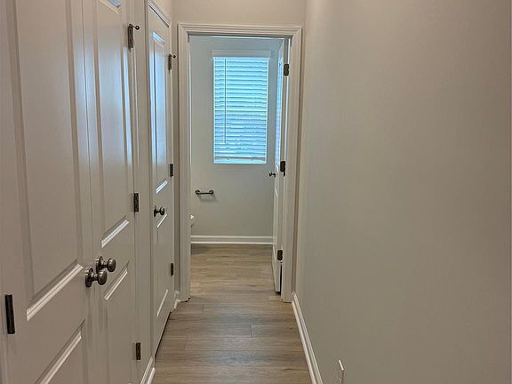 This charming two-story townhome includes three bedrooms and two-and-a-half bathrooms. Immediately inside the entrance is the open-concept great room, which flows directly into the eat-in area and kitchen, featuring a large island perfect for entertaining. Upstairs, the primary suite boasts a walk-in closet, a boxed ceiling, and a dual vanity. A laundry closet is conveniently located just outside the primary suite. Two secondary bedrooms and a full bathroom complete the upstairs. A powder room sits just inside the entrance of the one-car garage, accompanied by a bench with cubbies or an organization cabinet.