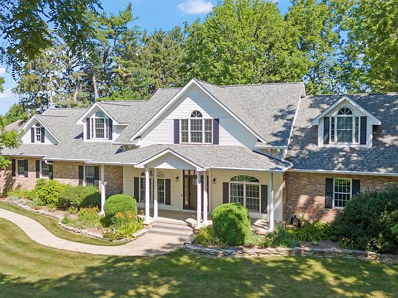 Set on a private, tree-lined 2.05-acre lot, this beautifully maintained home blends modern comfort with timeless country charm. From the moment you arrive, the impeccable curb appeal sets the tone—and the same inviting warmth carries through the expansive backyard retreat. Step inside to be greeted by rich hardwood flooring and a soaring 2-story, great room filled with natural light from a dramatic wall of windows overlooking the serene rear deck and wooded views. The heart of the home is a sprawling kitchen featuring a dual sided fireplace, breakfast bar, eat-in space with panoramic views, and access to a freshly rebuilt deck—perfect for morning coffee or entertaining guests. A stunning formal dining room adds even more hosting potential. The main-floor primary suite is a luxurious escape, showcasing a fully updated, spa-inspired bath with a walk-in shower, soaker tub, dual vanities, and not 1 but 2 walk-in closets.2 additional main-level bedrooms share a full bath and offer generous space for family/guests. Upstairs, 2 massive bedrooms are separated by a large cozy family room.1 upstairs suite includes a private entrance from the garage—ideal for multi-generational living. Each bedroom boasts its own full bath and closet space rivaling primary suites in other homes. A full basement offers endless potential with a partially finished bathroom already in place. Even the garage impresses, with freshly refinished floors and meticulous upkeep seen throughout.