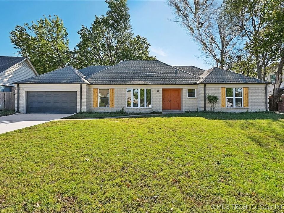 Marvelous Mid Century Brick Ranch with full remodel! Three bedrooms with walk in closets, 2.5 baths, bonus room which could be office, exercise room or bedroom. All baths updated with new showers. Floor plan correction for open kitchen to den with fireplace. Second living area and dining room. All new fixtures, flooring, cabinets and appliances. Fresh designer colors compliment the abundance of natural light. On quiet street with nice treed lot and new driveway. Home is in move in condition!