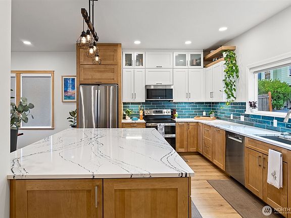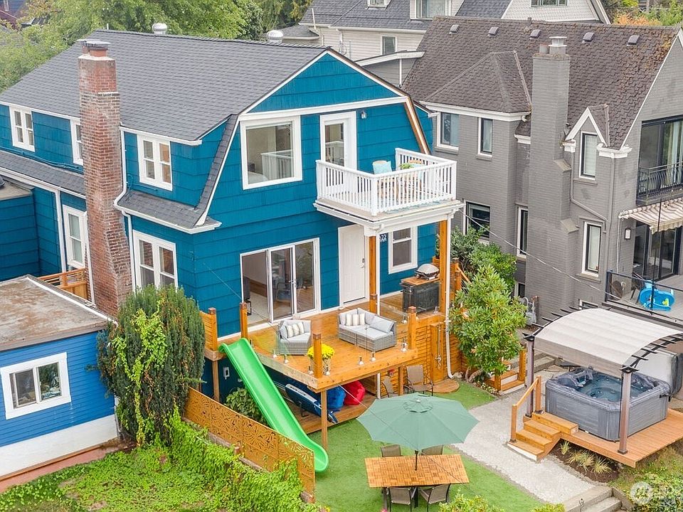 Rare chance to own directly on Green Lake! This fully renovated Colonial is move-in ready, showcasing panoramic lake views from the deck, porch, living room, and master suite. With four bedrooms all on one level, this rare layout pairs perfectly with the lakeside lifestyle. The entry foyer opens to a generous entertainment space on the main floor, while the main bath features both a shower and spa tub. An outdoor hot tub with lake views offers year-round relaxation. Steps to biking, kayaking, cafés, pubs, and eateries—and within Green Lake Elementary, Hamilton Middle, and Lincoln High district—this is the perfect blend of lakefront serenity and urban convenience.