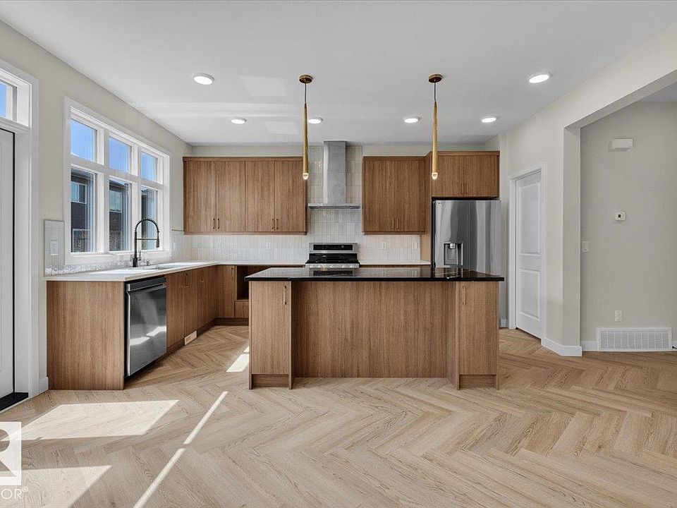 Stunning streetscape 2-storey in Keswick, complete with an attached double garage and an inviting open foyer that sets the tone for the home. The main living area blends timeless finishes, 3cm quartz countertops, warm wood-toned cabinetry, a walk-in pantry, and a gas line to the stove. Just off the bright living room is a versatile barn-door enclosed den with access to a full 3pc bath with shower. Upstairs, a spacious bonus room anchors the floor, along with the main bath, laundry, and three generous bedrooms. The dreamy primary suite impresses with vaulted ceilings, his-and-hers closets, and a spa-inspired ensuite featuring double sinks, a freestanding tub, shower, and private water closet. PRE SALE - tentative start Feb 2026. Estimated completion July/August. $5,000 towards appliances included. Photos from a previous build & may differ; interior colors are represented, upgrades may vary, appliances not included. HOA TBD.