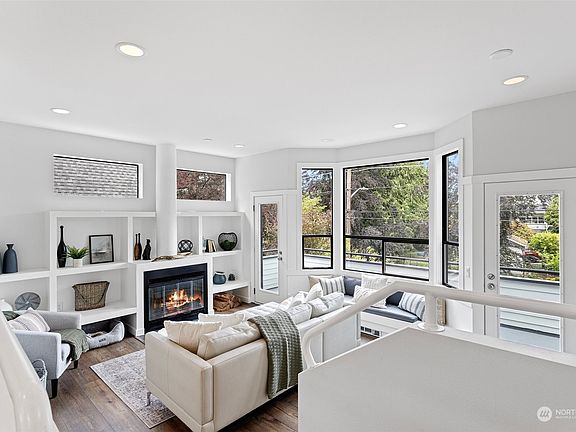 Just One Block From Greenlake! This updated contemporary home offers NW living w/luxury upgrades, rich natural light, stunning lake views & a premiere location. Cozy up by the fireplace in the sunken living room w/a built-in bench & large deck. Chef's kitchen has SS apps, granite tops, custom cabinetry & a raised breakfast bar island. The floor-2-ceiling window family room flows out to the backyard oasis w/a covered patio & firepit. Upper has 2 beds & a primary bed w/skylights, vaulted ceiling, lake view & heated floors open ceiling baths. Lower has 2 beds, bath & 2 car garage. New int/ext paint & floors. Close to Wallingford, Phinney Ridge, Zoo, I5, 99, dining, shops & more. This is your chance to live in one of Seattle's iconic locations!