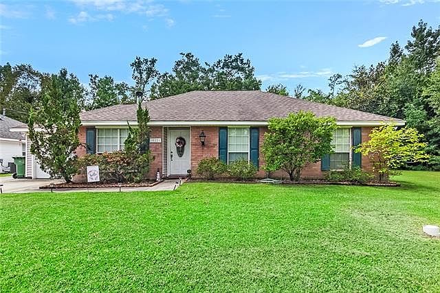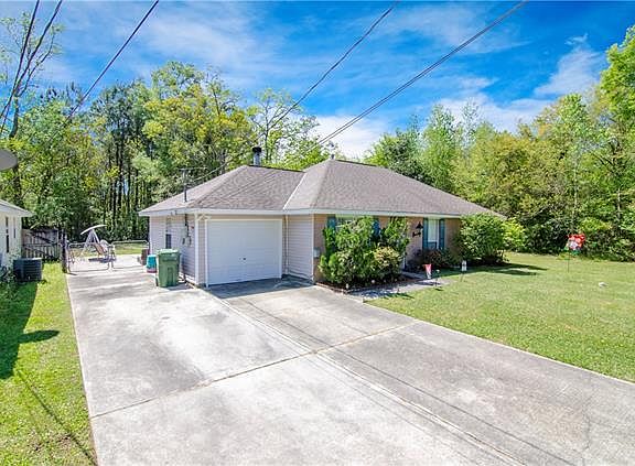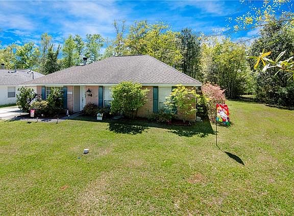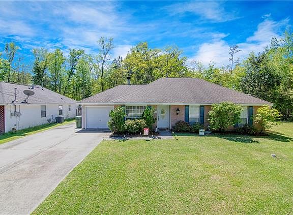 Lovely traditional home in Bayou Liberty Estates! Open plan living room with vaulted ceiling and corner fireplace, laminate floors; clean and pristine kitchen with corner pantry; sunny breakfast room; master with tray ceiling; ensuite bathroom; double-wide driveway; home sits on an oversized lot and has a park-like backyard with large concrete patio, endless, serene wooded views; great location! NEW ROOF INSTALLED MARCH 2020!!