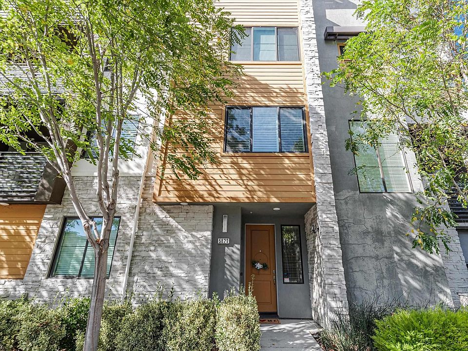 Welcome to this modern townhouse-style condo featuring 2 bedrooms, a versatile flex room, 2 bathrooms, and a balcony. With approximately $60K in upgrades, this home is located in the vibrant Boulevard neighborhood, blending luxury, convenience, and style. The gourmet kitchen includes an island with granite countertops, backsplash, stainless steel appliances, and dome pendant lights. The primary suite boasts a walk-in closet and en-suite bathroom with double vanities and a stall shower. The second bedroom offers easy access to a full bathroom with quartz countertops, a bathtub, and upgraded fixtures. The flex room is ideal for a home office. An open-concept great room with high ceilings and natural light is perfect for relaxation and gatherings. Upgrades include fresh paint, hardwood floors, ceramic tile in the laundry room and bathrooms, upgraded carpet, and smart thermostats. Additional features: in-unit washer/dryer, tankless water heater, and an attached 2-car garage. Community amenities include a recreation center with a clubhouse, pool, workout rooms, and a kitchen. Walk to BART, top-rated schools, and nearby Persimmon Place with Whole Foods, Nordstrom Rack, and more! You will love it and come to make it your future home!