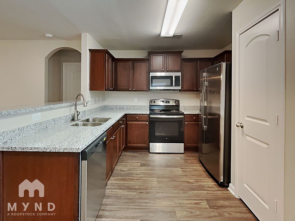 Experience easy living and everyday functionality at 5823 Treasure Cove Rd, a charming 3-bedroom, 2-bathroom home with 1,166 sq ft of thoughtfully designed space. Step into a bright and open layout featuring a spacious kitchen with ample cabinets, generous counter space, a pantry, and a full suite of appliances, including a refrigerator, electric range oven, microwave and dishwasher. The primary bedroom offers comfort and privacy with a large closet and an en suite bath complete with a tub/shower combo. Additional perks include a dedicated laundry room with washer/dryer hookups, attic storage, and a smoke-free, pet-friendly environment. Outside, a fully fenced backyard provides space to relax, play, or entertain, and the attached garage with covered parking adds everyday convenience. Tucked within the Joseph Cove neighborhood, residents enjoy access to community playgrounds and picnic areas. With Trinity Bay just minutes away and quick access to I-10, this location balances peaceful neighborhood charm with excellent connectivity. Don't miss out on the opportunity to make this wonderful property your new home, apply today