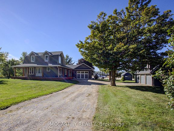Majestic 3 Bed, 3 Bath, Country Property, Hobby Farm 16 acres with a Large shop & office For large trucks, has large auto roll up doors, Front finished office with Separate Hydro, 3 pc Washroom, heat, kitchenette, loft storage, storage, separate septic, shared well with house. 2 Driveways into property one to house, one to shop and large Parking area, Beautiful House, attached heated 1.5 car garage and a second detached 2 Car Garage, finished as a gym with two garage doors, one man door with rubber floor great for workouts. 2nd detached one car garage & Garden Shed. Park like yard, Wrap around porch to watch the sunrise and sunset. Commercial industrial portion has Shop 40x60plus 20x25 ft, remote garage door, heated garage, insulated and finished Office with 3 pc bathroom, kitchenette, loft storage, storage, Contractors paradise, or Man Cave extraordinaire. Farm workable acreage, field is rented for 2025 season. Hobby farm potential. Business, Investment, Homestead opportunity Two driveways, Large gravel parking area, Two Septic systems, 2 hydro services, One drilled well. Unique set up, to work and live at home. Lg Open concept Living, Dining Kitchen, Lg windows overlooks the back yard, Kitchen has large centre island with breakfast bar, Creates a great family gathering space. Main Floor laundry, Primary Bed with access to outsid and 2nd bedroom and 2 baths are 4pc One is large Primary Ensuite, plus convenient access 2nd Bedroom on Main Floor. 3rd Bedroom on second floor, is extra large can be used a extra living space has a 2 pc ensuite. Beautiful home, Well finished and Modern, has a wrap around porch 3 sides, with great curb appeal. Modern and all updated with new windows, doors, furnace, air cond, flooring, kitchen, well casing, pots lights and new lighting, Roof updated. Lower level is dry and ready for storage. Extra wide wooden staircase to second floor. Close to Shelburne on paved County Rd 17 easy access for commuting.