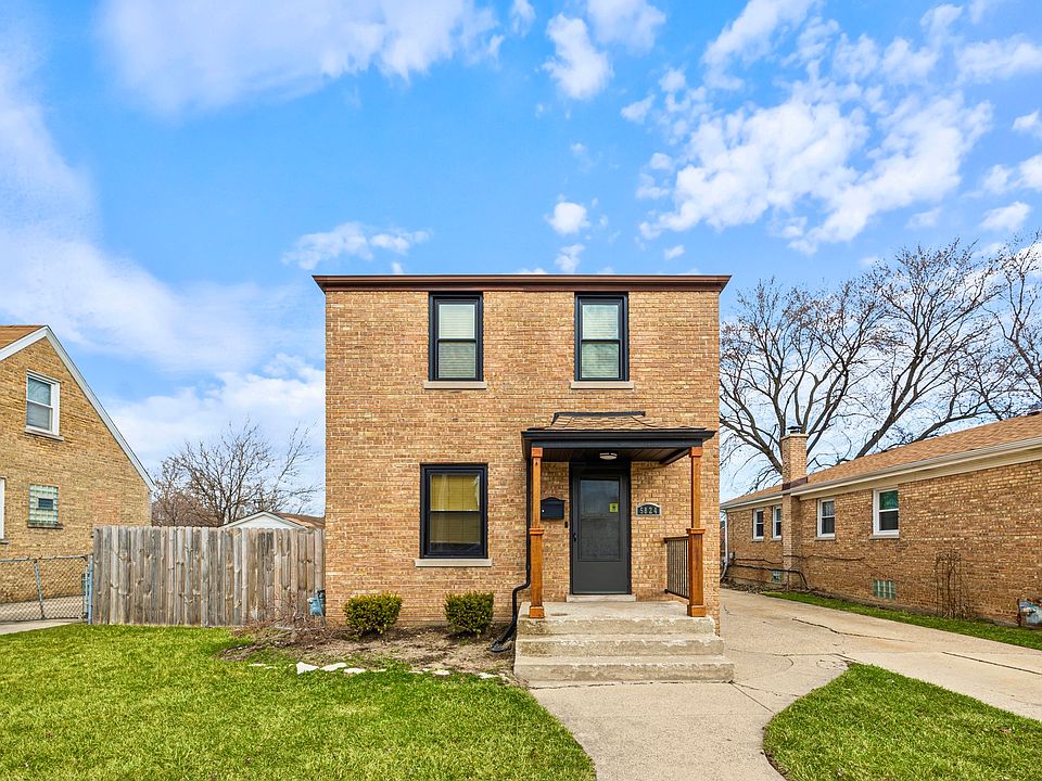 Charming 2BD/2BTH brick Georgian on an expansive lot, blending classic character with modern updates. The living room showcases elegant crown molding, flowing into a bright dining area with updated fixtures and hardwood flooring. The remodeled kitchen boasts quartz countertops, timeless blue shaker cabinets, stainless steel appliances including a dishwasher, soft-close drawers, under-cabinet lighting, and a crisp tile backsplash, designed for both function and style. Upstairs, you'll find two comfortable bedrooms and a full bath with custom tilework. Newer hardwood floors lie beneath the carpeting, providing flexibility for future owners. The finished basement is perfect for a family room, home office, or workout space, plus a second full bath for added convenience. Step outside to enjoy the private patio, newly installed fence, two storage sheds, and terraced planting beds, creating a great space for relaxation, gardening, or entertaining. The oversized lot offers space to build a garage if desired. The all-brick exterior enhances curb appeal and durability. Major improvements include a newer roof, furnace, A/C, updated plumbing and electrical, modern light fixtures, and recessed lighting, offering peace of mind and everyday comfort. Convenient location close to Prairie Path, schools, restaurants, shopping, Metra and major highways. This home is ready for its next owner. Schedule your showing today!