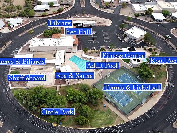 New Flooring throughout just installed! Also, most updates are done for you, newer roof, cabinetry, appliances, and a 30ft x 8ft trex deck! This home sits on a large lot in beautiful Tucson Estates, with gorgeous mountain views! The low HOA fee in this 55+ community includes unlimited golf, tennis, pickleball, shuffleboard, 3 pools, spa, exercise room, trash collection, and a lot more. Also included is the full use of separate buildings for card games, billiards, and other social gatherings. You own the land, no lot rent!
