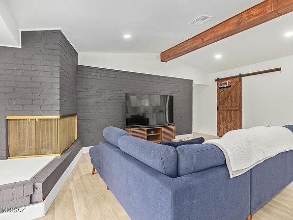 Come see this highly remodeled home now available! Discover tasteful updates as you enter the home. featuring a neutral paint, vaulted ceilings, striking wood beams, elegant wood-look/carpet flooring, and a living room accented with a wood-burning fireplace. AZ room for more living space! Stunning kitchen offers white cabinetry, gorgeous quartz counters extending unto the backsplash, and stainless steel appliances. Main bedroom is a delight to rest and relax complete with a private exit, bright windows, custom closet space, a lavish en suite with dual sinks, a soaking tub, a shower, gold-finished hardware, and a custom-designed walk-in closet. Stacked washer/dryer conveys! Outback, there's ample paver patio space, storage, and still a lot of room for your creativity. Don't miss it!
