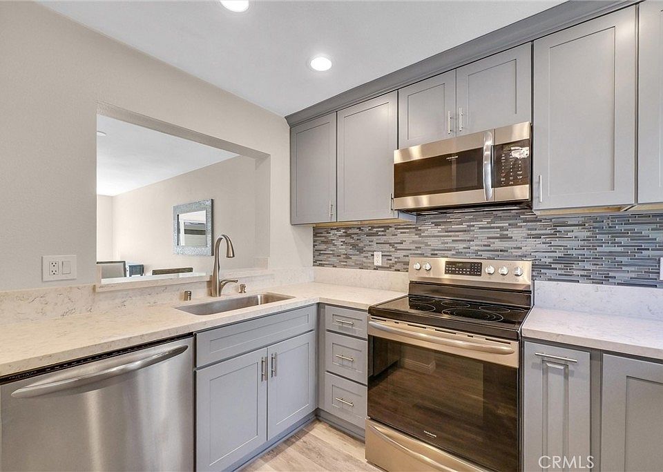 Property has been completely remodeled. Gorgeous kitchen with soft close technology cabinetry, stunning quartz countertops, stainless steel appliances including microwave and subway tile on wall. Beautiful water proof flooring, LED lighting, Milgard windows and slider door. Welcoming living room provides a cozy atmosphere with remodeled fireplace.