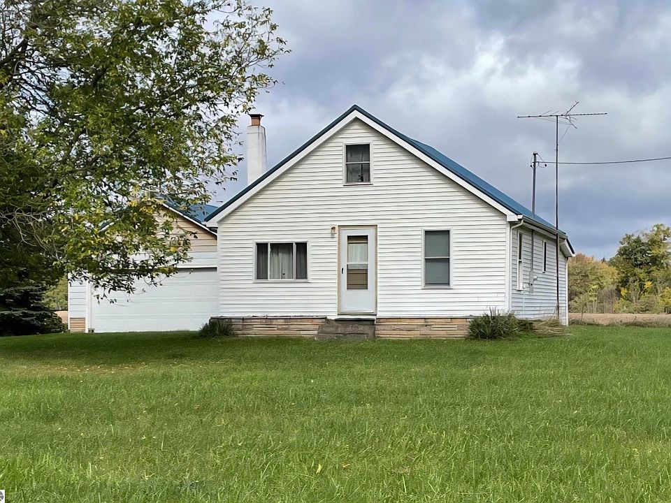This 2.5 acre estate sits on a beautiful countryside setting. Enter into an open-concept kitchen/dining combo and living room area with lots of natural light. There is a quaint downstairs bedroom and two upstairs. The two-car detached garage has electricity and cement floors. On the property you'll find apple trees and grapes. The metal/steel roof is approximately 3 years old, with windows/siding being put on within the last 20 years. Because this is an estate, there are many unknows as far as disclosures, but with a little tender-loving-care, this property could be turned in to a cute family home or up north retreat. (Note: This property comes partially furnished including all appliances and some furniture. Excludes: antique hanging light in living room, kitchen table/chairs/clock, screen door, antique dresser, rocking chair.)