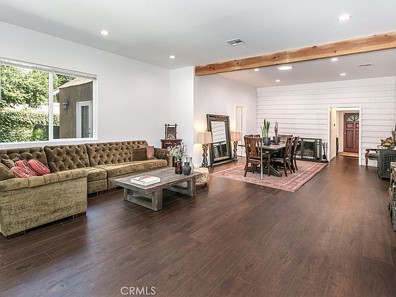Step into an expansive, light-filled living room, where raised ceilings and skylights create a bright and airy ambiance. Just beyond, a separate family room provides the perfect retreat for relaxation or entertaining. The brand-new kitchen shines with sleek stainless steel LG appliances, custom cabinetry, and elegant finishes, while a breakfast eating area with counter seating makes for a welcoming space to gather. Additional upgrades include new hardwood and laminate flooring, updated electrical and plumbing, new recessed lighting, and a new central HVAC system for effortless comfort.