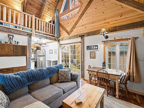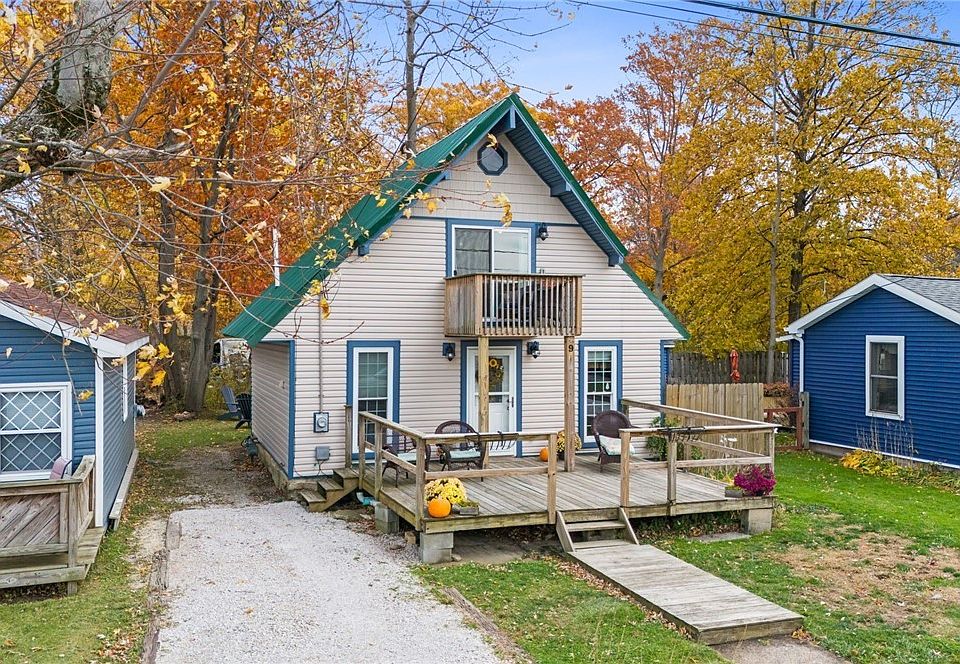 Tis the season to become the new owner of this move in ready, year round residence with private beach access in a private community. OR if you prefer, just enjoy the summers here. Originally, an adorable little cabin by the lake from the 1950's on leased land, it was demolished and has has been transformed into the warm, wooden amazement of newer construction you see online now in photos. Wait until you see it in person! The pride in ownership is overflowing from the exterior, front door and every detail. From the Acacia wood floors, to the knotty pine to the gleaming kitchen counters. Prior owner began remodel around 2007. Current owner completed over their years here. Now fully insulated, concrete crawl space (with interior access) and permanent foundation, newer furnace, HWT, and all appliances stay! Open concept main floor with full 3 piece, tiled bathroom featuring a walk in shower. A complete laundry room located on the main floor also. NO lugging to a laundry mat or shared laundry. NOW... Second floor, up that gorgeous custom, staircase to the primary bedroom and two other sleeping areas in the loft. The primary bedroom has a balcony....imagine watching the sunsets ,boats or stars every night! The custom Sailboat window on the rear wall of the home and so many other features make it an absolute dream beach home on Lake Erie. Back yard deck, shed and the fire pit are stellar for entertaining at home.... or the community center for this association is also possible. Enjoy the lake (private beach access at end of the street) or step out and explore Ashtabula dining, public Lake beaches, the harbor and the locational excellence between Cleveland and Erie, PA allows quick Highway access to Route 90 or 11 for commuters. Or just stay home and enjoy the peace of every season....winter, summer, spring or fall, this tiny home lifestyle could be yours!