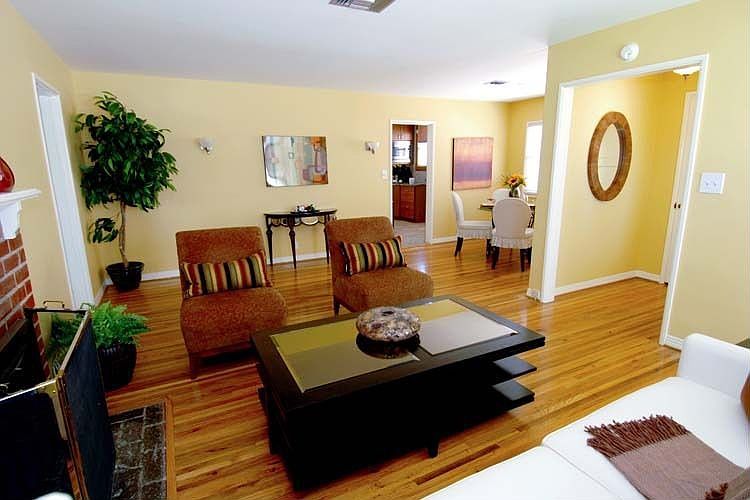 Love At First Sight!!! As you drive up to the house, an explosion of flowers that borders a brand new lawn. The new front door opens to gorgeous original hardwood floors that leads you throughout the home to 3 bedrooms and 2 baths. Formal living and dining room with fireplace and contemporary colors. You will enjoy cooking in this true cook’s kitchen with beautiful Omega solid wood cabinetry, Top of the line Appliances, German-made Hera lighting under cabinets, Brazilian Stone Granite Counters with White Honed Quartzite Backsplash and Green Quartzite Tile Floors. Enter the bedrooms with fabulous custom colors and 4th huge GREAT room with bar provides that family fun with 2nd fireplace for entertaining. Access the Rear Lush Yard with Barbeque area. Located in the new Sherman Oaks and most wanted neighborhood of Kester Elementary Magnet Distinguished School.