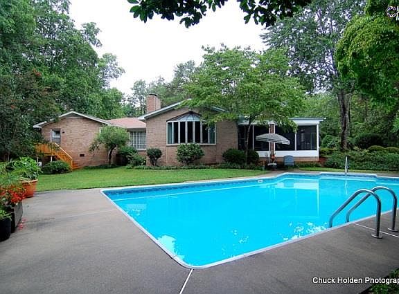 Enoy this rare find of over 9 acres of property complete with mature shrubs, gardens & wooded areas. Desirable brick home features a large dining room, living room & family room complete with wood floors, new carpet & roof. The open dining & living room, huge family room, and screen porch overlooking the back yard and in-ground pool are great for entertaining. Property also features a grill cabana, screened porch, workshop, & shed to enhance the outdoor living space. The kitchen features a dining area, island, & ample cabinet storage. The large owners suite has a beautiful granite shower & vanity plus double closets. The spare bedrooms are spacious & the garage has been converted into a game room.