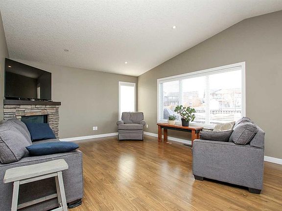FULLY DEVELOPED 5 BEDROOM, 3 BATHROOM MODIFIED BI-LEVEL ~ WALKOUT BASEMENT ~ BACKING ONTO A WALKING PATH & POND ~ SEPARATE SIDE ENTRY ~ Covered front veranda leads to a welcoming foyer with high ceilings ~ The open concept main living space is complemented by soaring vaulted ceilings and large windows that fill the space with natural light and have views of the natural space just behind ~ The kitchen offers a functional layout with plenty of dark stained cabinets, full tile backsplash, tons of granite counter space including a massive island with pendant lights above, and a walk in pantry ~ Easily host large gatherings in the dining space that's surrounded by floor to ceiling windows, and garden door access to the sunny west facing deck with more great views ~ The spacious living room features a cozy gas fireplace with stacked stone surround, mantle and space for your TV above ~ 2 main floor bedrooms are both a generous size with ample closet space ~ 4 piece main bathroom has an oversized vanity and a linen closet ~ The private primary suite is tucked away on it's own level and features soaring vaulted ceilings, a spa like ensuite with a soaker tub and separate walk in shower, a large walk in closet, and additional storage space ~ Lower level mud room just off the garage has large windows and offers a second, separate entry on the side of the house with access to the basement with conveniently located laundry and a large storage just at the bottom of the stairs ~ The fully finished basement features high ceilings, large above grade windows, built in speakers and operational in floor heat and two laundry hook ups~ Large L-shaped family room with plumbing roughed in for a wet bar has plenty space for a media area and games tables ~ Garden door from the family room walks out to a covered concrete patio with wiring for a hot tub ~ Two basement bedrooms are located adjacent to a 4 piece bathroom and linen closet ~ 25' L x 24' W double attached garage is insulated, finished with painted drywall, has built in shelving, two overhead doors and a man door leading to the front yard ~ The backyard is landscaped, has a fire pit, garden shed, and is fully fenced with direct access to the walking trails and natural reserve just behind ~ Easy access to parks, playgrounds, schools, and shopping ~ Pride of ownership is evident in this well cared for home!