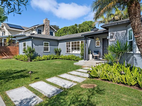Move in time for Halloween in the best neighborhood. Welcome to one of the most desirable streets in Upper Hermosa, offering prime access to the shops, restaurants, and beaches of Bird Rock. Nestled on a spacious 8,200 sq ft flat lot, this classic U-shaped single-story home blends timeless charm with modern potential. Step inside to discover refinished original hardwood floors, freshly painted interiors, and light-filled living spaces that seamlessly flow to the beautifully landscaped front and back yards — perfect for entertaining or enjoying quiet coastal evenings. With 3 bedrooms and an optional 4th, there's flexibility for a home office, playroom, or guest room. Enjoy year-round gatherings around the outdoor fire pit, and take advantage of the exceptional indoor-outdoor flow that defines Southern California living. Whether you're relaxing as-is or envisioning the future, this property includes nearly-approved plans for a remodel and addition, giving you a unique opportunity to expand. Room to add a pool, ADU, or convert the garage — the possibilities are endless. A true gem in La Jolla's most coveted neighborhood, this is single-story living at its finest.