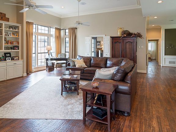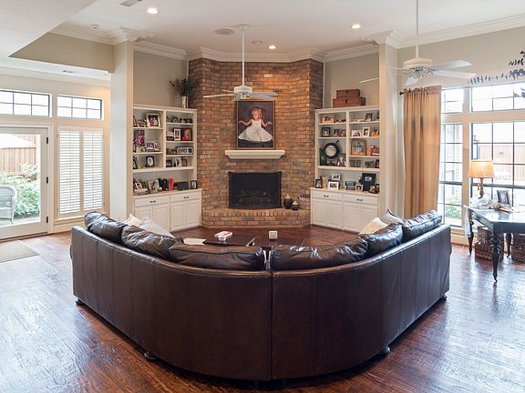 Beautifully updated one story in sought-after Steeplechase! Fabulous features include plantation shutters, rich handscraped hardwoods, crown molding, an open floor plan, granite, travertine, and updated hardware & fixtures. The sophisticated formal dining room is perfect for dinner parties and the nearby living room features a floor-to-ceiling brick fireplace, built-ins, and doors leading to the side patio. Gourmet kitchen with glass front cabinetry, granite countertops, stainless steel appliances, breakfast bar, and adjacent breakfast nook with built-in hutch. The lovely family room features a wall of windows, fireplace, and walk-in wet bar. Luxurious master suite with sitting area and completely updated master bath with private pool access! Additional spaces include large secondary bedrooms with handscraped hardwoods, walk-in closets, and baths; utility room with freezer space and sink, and wonderful backyard paradise with pool, spa, patio space, fenced dog run, side patio, and board-on-board fence!