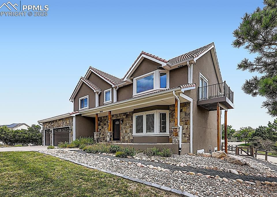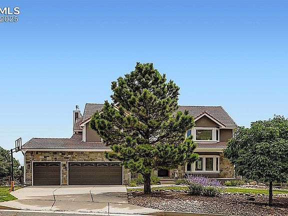 Scenic 6-Bedroom Home With Breathtaking Mountain AND City Views! Located in the desirable Mountain Shadows neighborhood on the west side of Vindicator Drive, this 6-bedroom, 4-bathroom residence showcases over 4,000 SF of luxurious living across three levels. With 3 full baths and 1 half bath, comfort and convenience are thoughtfully integrated. Step into an inviting foyer, noting a beautiful sweeping staircase leading to the 2nd level. Before ascending, imagine a sideboard, mounted bench, chairs, shelves, or stands adorning the entry. Off to the right lies the Front Room. The Kitchen sits beyond the staircase, with soft glow under-cabinet lighting that make for a perfect ambient backdrop to the adjoining living room and its fireplace. The main level also features a formal dining room, laundry room (spacious enough for a utility sink), and access to a large back deck which is ideal for entertaining. Beyond the back door is a tranquil escape of lush greenery, frequented by deer and bunnies. Landscaping blends ornate pebbled stone with astroturf and grass, while a private northwest-corner sitting nook creates a space for deer watching, chats, introspection, or taking in the city lights at night. A jacuzzi is a final flourish to this delightful backyard experience. Upstairs, the exceptional layout provides a skylight-lit primary bathroom, a large 2nd bedroom, and 2 additional bedrooms. The finished basement encompasses 1,180 SF of its 1,260 total, featuring 2 bedrooms (or offices), a family/game/theatre room, wet bar with mini refrigerator, a second gas fireplace, a full bath, and understairs storage. Rounding out the home’s appeal are a 3-car garage with heavy-duty overhead gear lofts for recreational equipment and hobby storage. Home has an intercom system throughout. Schedule a showing today to experience an extraordinary blend of elegance, comfort, and versatility.