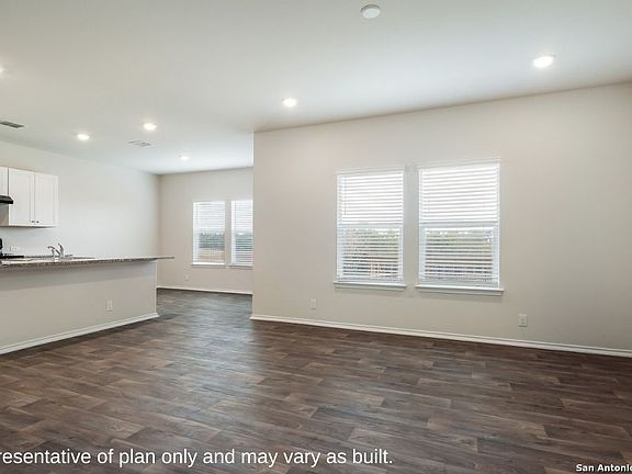 Welcome to The Emma, a two-story home located at Stonehill in San Antonio, TX. This floor plan offers 2 classic exteriors, 2-car garage, and a full yard landscaping and irrigation package, ensuring that your home looks it's best every single day. Inside this 3 bedroom, 2.5 bathroom home, you'll find 1700 square feet of living space. The entry opens to grand family room before flowing into the kitchen and dining area with an open floorplan concept. The gourmet kitchen includes quartz counter tops, shaker style cabinetry, stainless steel appliances, large breakfast island, and spacious pantry. Head up the stairs to find the main bedroom suite, all secondary bedrooms, the laundry room, and a second full bath. The Emma layout is perfect if you love entertaining downstairs and relaxing upstairs. The private main bedroom features an attractive ensuite with plenty of shelving space and shaker style cabinetry. A spacious tiled walk-in shower, separate door for your toilet, and large walk-in closet provide all the space and convenience you need. Additional features of The Emma floor plan include sheet vinyl flooring in entry, living room, and all wet areas, quartz bathroom countertops, and a covered back patio (per plan). This home includes our HOME IS CONNECTED base package. Using one central hub that talks to all the devices in your home, you can control the lights, thermostat and locks, all from your cellular device.