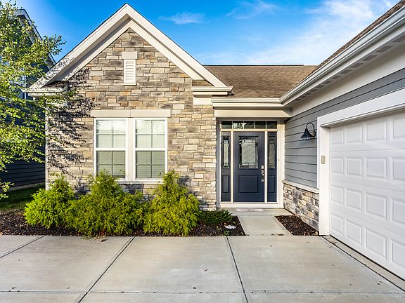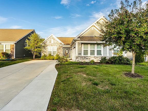 Welcome to The Enclave on Lyster Lane. A small and intimate low maintenance community featuring thoughtful amenities such as outdoor fireplace, firepit area, paved walking trail, newly created nature area, and two stocked ponds. Step inside this beautifully designed ranch style home to numerous upgrades including the 4' garage extension, mudroom bench and storage, kitchen cabinet and quartz countertop upgrades, not to mention the 14.10 x 12 covered patio perfect for your morning coffee or evening gatherings. Upon entering the foyer, you will be embraced by beautiful wood trim details and the private main floor office/den which could be a third bedroom. The open and bright kitchen is accented by a blue center Island, walk in pantry, clean crisp white cabinets and white quartz. The soft hues of luxury vinyl plank flooring by Shaw Industries completes the sleek neutral decor of the kitchen and dining area while extending through the great room and hallways. With lots of natural light the great room is a perfect sanctuary for relaxation or entertaining. At the end of your day retreat to the primary bedroom with walk in closet and well thought out primary bath featuring a zero-entry full shower, grab bars and generous bench. Many convenience details were added by the owners at time of construction including ramps instead of steps in the garage and on the patio. Come see this well-appointed home that could be just right for you.
