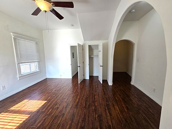 Charming, classic Hollywood 1 bedroom 1 bath with extra space for desk, studio, etc Hardwood floors Mini split AC Black and white tiled bathroom floor Refrigerator Stove Dishwasher Washer/Dryer Hookups Ceiling Fans Walk-In Closet Extra bedroom space for office, den, etc. 2-Car Tandem Shared Parking off the street Shared courtyard Secure entry to building and unit