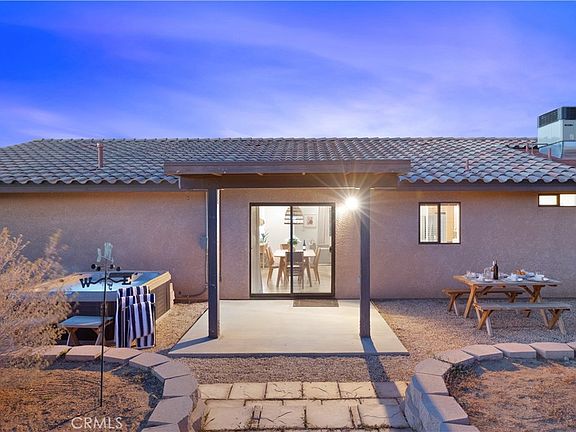 Nestled in the heart of Yucca Valley, CA, 58269 Alta Mesa Drive is a fully furnished, turnkey treasure. This enchanting 3-bedroom, 2-bathroom home boasts a beautiful custom kitchen with gleaming stainless steel appliances and an open floor plan that invites warmth and togetherness. The large bedrooms offer serene retreats, while the backyard is a haven of relaxation and entertainment, complete with a fire pit, BBQ, spa, and privacy-fenced serenity. Picture yourself enjoying starry nights under the covered patio, creating memories that will last a lifetime. Garage has been creatively transformed into a game room, to enjoy day or night, in hot weather or cold! Kids and adults alike will love this space! Currently cherished as a family getaway and a part-time vacation rental, this property offers endless possibilities for your dreams. Just minutes from downtown Yucca Valley, the artistic charm of Joshua Tree, and the breathtaking landscapes of Joshua Tree National Park, this exceptional home is a rare find.