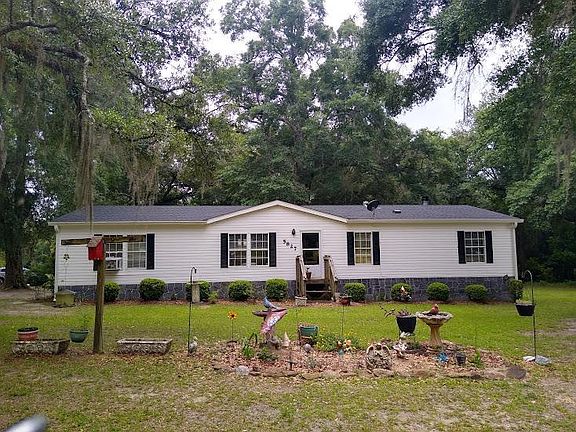 4.46 AC with 1680 Bellcrest Mobile Home with stucco skirting. Large 12x40 back porch to overlook the beautiful large Oak trees. 3 bedrooms, 2 baths, new roof, new flooring, A living room with ceiling fan and a fireplace with mantel. A great room with lots of natural light throughout the house. The Kitchen has oak wood cabinets and an Island with a divided deep sink and outlet. Large bedrooms with walk-in closets, Master Bathroom has a garden tub, insert shower, and double sinks. Workshop with concrete flooring and electricity has 4 separate areas, 30x40 enclosed workshop, 18x30 carport, 10x30 lean-to for boats or lawn mowers, and 10x30 enclosed area. Riding Trails on the property. Can place another home on the property if need another dwelling. Very neat and clean. Large Lot with LOTS of extras for the price!!!