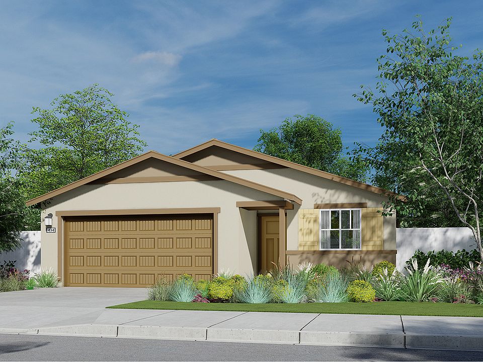 This new three-bedroom home offers convenient single-story living. An open-concept floorplan combines the kitchen, living and dining areas for seamless entertaining and multitasking. A secondary bedroom boasts a private location near the front off the entry, with two additional bedrooms tucked away to the side, including a luxurious owner's suite with a full-sized bathroom and walk-in closet.