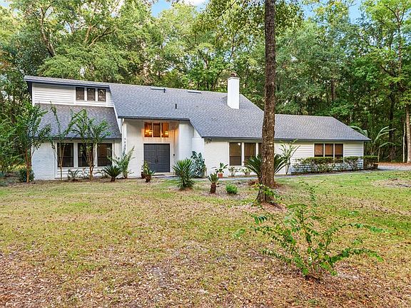 Welcome home to this stunning 4 bedroom, and 2.5 bath home with 2,571 sq.ft., set on a rare 1-acre lot in the sought-after Spring Forest community. Tucked off the scenic Millhopper Road, this property offers peaceful, nature-filled living while being just minutes from Hunter’s Crossing shops, dining, parks and preserves. Inside, you’ll find the bright foyer with a grand staircase, spacious formal living and dining rooms, a large family room with a brick wood-burning fireplace and built-in cedar bookcases, plus an oversized kitchen with breakfast nook. The screened porch is perfect for outdoor living. A flexible office/guest suite with half bath and a 2 car-garage access adds versatility. Upstairs are 4 comfortable bedrooms, including a spacious high-ceiling primary suite. Recent upgrades include a new roof (2022) and fresh exterior paint (2023). Enjoy deer and wildlife right outside your windows in this private, serene setting-an incredible opportunity in one of Gainesville’s most desirable neighborhoods!