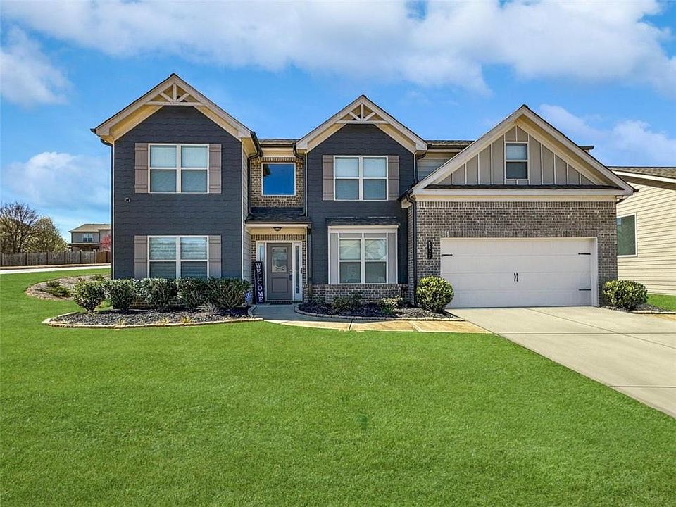 Welcome to your dream Craftsman-style home near Lake Lanier! This exquisite 5-bedroom, 3-bath residence boasts timeless charm and modern elegance. The 2-story foyer welcomes you with a grand entrance, setting the tone for the entire home. On the main level, discover a bedroom with a full bath, offering convenience and versatility. The formal dining room features a coffered ceiling, adding a touch of sophistication, while the separate formal living room provides a perfect space for gatherings. The heart of the home lies in the well-appointed kitchen, showcasing sarsaparilla cabinets, granite countertops, stainless steel appliances, and a convenient walk-in pantry. Overlooking the family room with a cozy fireplace, this open-concept space is ideal for entertaining. Hardwood floors adorn the foyer, great room, kitchen, and dining room, creating a seamless flow and a warm, inviting atmosphere. Upstairs, a spacious owner's suite awaits, complete with a sitting area and a spa-style bath for the ultimate in relaxation. Additional features include 2" faux wood blinds, a step-up media room for entertainment, and beautiful accent walls throughout the house. Outside, enjoy the community amenities, including a pool, clubhouse, playground, and walking trails. Plus, the proximity to Lake Lanier, just 1.5 miles away, ensures endless recreational opportunities. Experience luxury, comfort, and the perfect blend of craftsmanship and modern living in this stunning home near Lake Lanier. Your ideal lifestyle awaits! ** Home has Span Smart Electrical panel, will remain with property ** ** Wiring for Tesla Charger will also Remain**RATES UNDER 5.9%** FREE HOME APPRAISAL **