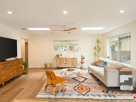 Welcome to this extraordinary modern compound, featuring a fully remodeled ultra-chic 3-bedroom, 3-bathroom home, a spacious new ADU, and a luxurious pool. Nestled on a picturesque, tree-lined street, this turnkey residence seamlessly fuses contemporary style with easy, comfortable living. Step inside to discover an airy and open-concept floor plan awash in natural light, flowing in through expansive windows and stunning skylights. The chef's kitchen is truly a culinary dream, equipped with premium Thermador stainless steel appliances, butcher block counters, a grand island with bar seating, and a walk-in pantry designed for ample storage. The spacious primary suite offers a private sanctuary complete with a walk-in closet and ensuite bathroom. Indulge in luxury with a dual sink vanity, a glass-enclosed shower, and a sumptuous soaking tub. Two additional well-appointed bedrooms share a stylish full bath. Venture outside to find an entertainer's paradise. The backyard is a welcoming oasis, showcasing pristine green turf, a Trex deck, and a sparkling new pool with spa, Baja shelf, and convenient outdoor shower. Multiple lounging and recreation areas invite endless enjoyment. Moreover, the property includes a large fully permitted ADU with its own kitchen, laundry, and spacious bathroom, ideal for hosting family and guests or generating rental income. Additional features of this gem include a charming powder room, easy access attic storage, laundry closet, dual-paned windows, solar panels and EV charger. The down-to-the-studs meticulous remodel boasts updates such as a new roof, updated electrical and plumbing, tankless water heaters, and a new central HVAC system with Nest thermostat. Conveniently located near major thoroughfares, metro station, studios, shopping centers, and local eateries, this perfect compound embodies the essence of easy, classic California living at its finest. Welcome home!