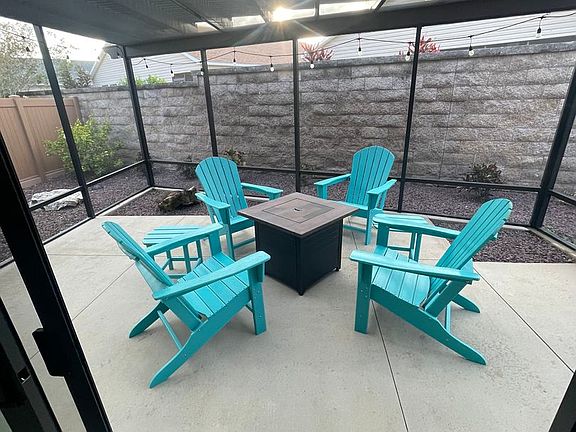 Enclosed lanaiFully screened-in pergola courtyardBreakfast barQuartz countertopsElegant finishesEnsuite bathFull-size washer and dryer