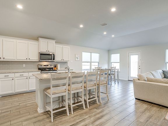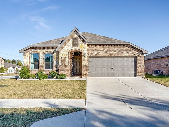 Welcome to this beautifully crafted, nearly new build in the sought-after Brookville Ranch subdivision. This 2022-construction home offers 1,620 sq ft of intelligently designed living space with 3 bedrooms and 2 full baths. Step inside to find an open floor plan where the living, dining and kitchen areas flow seamlessly—ideal for both cozy evenings and entertaining. The kitchen features modern finishes and ample cabinetry. The primary suite offers a private bath and generous closet space, while two additional bedrooms and a second full bath round out the accommodation. Outside, you’ll appreciate the corner lot and manageable yard on a 0.15-acre lot — perfect for outdoor gatherings or relaxing al-fresco. Additional highlights: a two-car garage, and immediate access to shopping, dining and amenities. Located within the Eagle Mt-Saginaw ISD, with easy commutes into Fort Worth and the surrounding metro areas. Assumable VA loan!