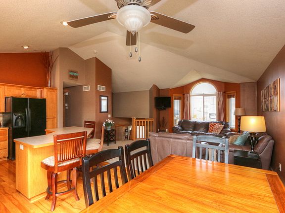 Foxtail Woods home! Master suite has it all! Kitchen has hardwood floors and large center island. Maintenance free deck, patio, and sprinkler system. Garage has side concrete slab. School District 831 available here. Located near bike trail and park.