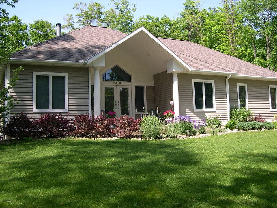 New adjusted price. Come take a peek at this gorgeous open concept home meticulously cared for. Enjoy all four seasons from this outstanding home. Great room boasts soaring ceilings with extra windows, stone fireplace with slate hearth, and open dining and kitchen area; ideal for entertaining. Gourmet kitchen offers a convenient layout for cooking, plus featuring cherry cabinets, stainless appliances, and an 8ft snack bar. Master suite is located away from other bedrooms and is complete with whirlpool tub, glass shower, walk-in closet, and sliders to the deck. Main floor offers 2 additional bedrooms and a full bath. Full basement has 3 egress windows and is ready for you to finish to your own desire - adding an additional 1,000+ sq ft. Many upgrades including geothermal heating just move in and start enjoying. Setting is beautiful, minutes to Saugatuck or Holland.