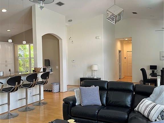 Spectacular one story home with spacious open concept, with vaulted ceilings and pool overlooking the water in spectacular Heron Bay. This gated community offers tennis club, pickle ball, 2 clubhouses with spa's, resort style pools, saunas, kids playgrounds and fitness facilities with many other amenities. AC replaced in 2018. Maintenance includes lawn care and sprinklers.