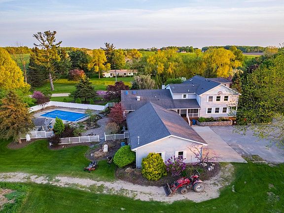 Priced $30,000 below recent appraisal! Welcome to your dream home oasis, a serene escape on 14 acres of beautiful countryside. This remarkable property seamlessly combines luxury, comfort, and the charm of rural living, offering an ideal retreat to create cherished memories with family and friends. With seven spacious bedrooms, four full bathrooms, and two half baths, there's ample room for everyone to relax in comfort—no waiting in line here! Dive into the refreshing inground pool or unwind in your private hot tub spa room. A dedicated game room offers endless entertainment options. The four-stall attached heated garage and pole barn provide extensive storage and workspace. Outdoors, discover abundant wildlife, two scenic ponds, and countless opportunities for adventure, making this property a true sanctuary for nature lovers.