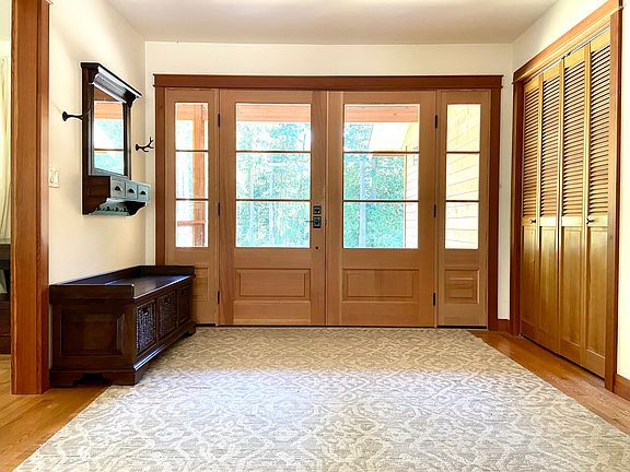 Live the dream on beautiful Orcas Island. Elegant farmhouse estate on more than four acres with gardens and fruit orchard only five-minute drive from Eastsound. Walk to public beach access at the end of the road. Bike to town and schools. Four bedrooms and two baths upstairs, one bedroom and one bath downstairs. Two living rooms, separate dining room, breakfast bar counter, back deck and greenhouse or solarium. Hardwood floors throughout with travertine and ceramic tile in downstairs suite and bathrooms. Natural quartzite stone kitchen countertops and stainless steel appliances. Nearly new washer and dryer. Outdoor dining on the deck and on the lawn. Large vegetable garden, berry bushes, apple, pear, plum, and cherry trees. Large, terraced grass lawn perfect for croquet. Outdoor firepit and trampoline. Central heat throughout, but wood-burning stove for ambiance. Solar panels and house battery keep your lights on during winter storms. Three parking spaces next to the house. Fully furnished. Flexible start date. Lease will be minimum 1 month. Lease will be at least 1 month. No subleasing. Utilities (water, electricity, internet, yard service, trash pickup) included. No EV charging, unless electricity is paid by tenant. No pets. No smoking of any kind. No parties. Please send a message to inquire. Do not drive by as the house is currently occupied by a caretaker. Lease will be at least 1 month. No subleasing. Utilities are included (electricity, water, internet, yard service, trash pickup).
