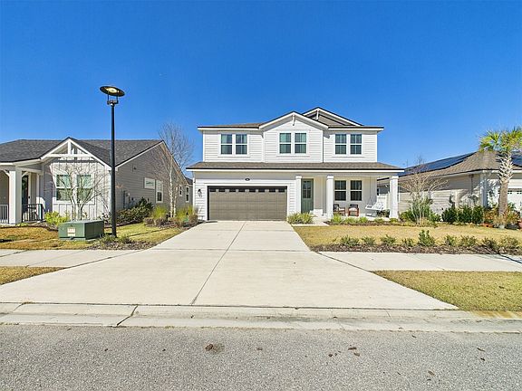 Why wait for new construction when this move-in-ready home is available now? Located in the golf cart-friendly Wildlight community, this beautifully upgraded home offers style and comfort with inviting front-porch living. The bright, open floor plan features a dedicated office just off the entry. The chef’s kitchen includes stainless steel natural gas appliances, a large center island, quartz countertops, and an abundance of cabinets, flowing into the family room with a shiplap accent wall and cozy built-in fireplace. Upstairs offers a spacious loft and a primary suite with a tray ceiling and spa-like bath featuring double sinks, a garden tub, walk-in shower, and walk-in closet. Three additional bedrooms, a full bath, and utility room complete the home. Enjoy the oversized, fully fenced backyard with room for a pool. Walking distance to Wildlight Elementary, community pool, parks, and a scenic lake with dock. Convenient access to Kings Bay and Mayport Naval Base, Amelia Island, UF Health, Publix, and Jacksonville International Airport.