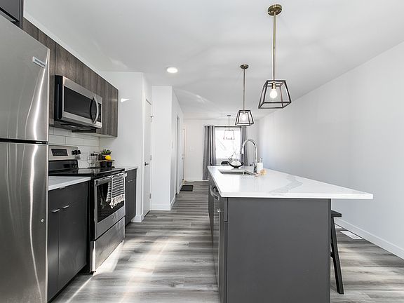 Finished lower levelVinyl plank flooringQuartz countertops in kitchenAir conditioning