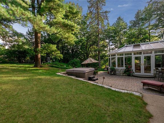 One of a kind luxurious English style cottage offers original interior detailing, numerous exterior features and comforts. Unique charming brick home with a dramatic Classic Conservatory from the UK to match. Home sits on a 1 1/2 acre hilltop secluded setting off a private road surrounded by mature trees, beautiful flower gardens, gazebo, fish pond, water fall and paved patio complete with large spa and fire pit also four outside seating/entertainment areas.This home offers 12 rooms, 4-5 Beds, 3 1/2 baths, 3 fireplaces. Enter into cherry wood foyer, fireplace office with beautiful built in's. Large fireplace living room, formal dining open to the conservatory, retro 1950 style kitchen featuring Big Chill induction stove and Silestone counter tops, lots of cabinets and unique patterned Marmoleun floor. Second floor has large master bedroom with private full bath, nursery/dressing room with builtin's, 2 guest bedrooms with full shared bath. Also private maid's quarters offers bedroom, walk in closet and private bath with tub. Pull down rainbow attic access. Lower level has a great fireplace family room with built in book shelves, office/entertainment room, laundry room, utility room, wine cellar/bunker and tons of storage. Home has hardwood floors through out, new heat and hot water, 200 amp electric, 2 car heated garage. Location is on Mass border. 8 miles to train station and only 14 miles to downtown Providence. Call for more details and private showing.