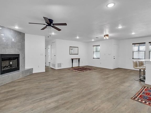 Wood-burning fireplaceBack fenceOpen floor planRecessed lightingStainless steel appliancesNew cabinetsCeramic flooring