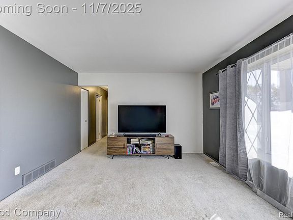 Contact LISTING AGENT to schedule a tour. Charming updated brick ranch on a spacious corner lot in Madison Heights featuring a bright open layout, cozy living spaces, and a private backyard perfect for entertaining. A cute covered front porch welcomes you into the home’s main living room, filled with natural light and neutral tones. The open-concept kitchen, dining area, and family room are the heart of the home—offering bar seating, stainless steel appliances, and a stylish back family room with a modern fireplace and sliding door to the deck. A convenient half bath is located near the side entry for guests. Down the hall, three comfortable bedrooms share a full bath, with the primary bedroom enjoying direct access. The partially finished basement adds flexibility with laundry space and lots of room for storage or future expansion. Outside, enjoy a fenced backyard with mature trees, a raised deck, and a detached two-car garage. Welcome Home!